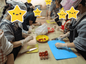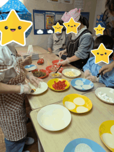 おやつ作りで「餃子の皮ピザ」を作りました。