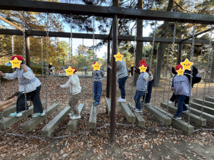 月と地球のエリアや林間アスレチック遊具で遊んできました。