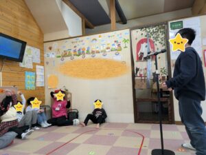 スタンドマイクの前でアーティストになりきり、歌を披露しました。