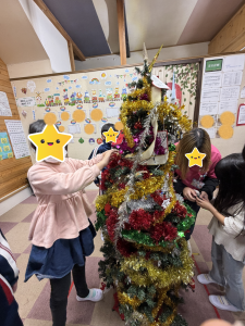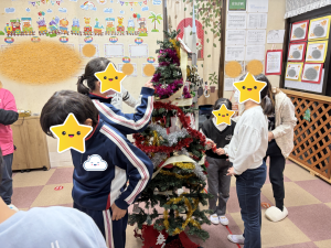 ♥2025-11-25 サンタさんへのメッセージを書き、クリスマスリースを全員で飾りました。 子ども達オリジナルの飾りつけをしたて創造性を発揮したり、お友達と共同作業することの楽しさを味わいました。 シェアする