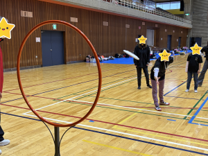 初めて開催されたパラスポーツ体験に参加しました。わなげ、フライングディスク、卓球バレー、ボッチャを指導者の方から丁寧に指導を受け、楽しく参加することができました。
