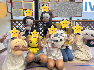 レクリエーションをした後に、景品を持ち、記念写真を撮りました。