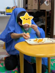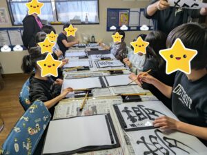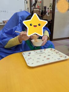 新しい年が始まるにあたり目標や抱負などを文字にした「書き初め」や、新年会では「二人羽織」を行い楽しみました。