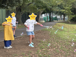 秋を感じながらどんぐり拾い、光や外の風を感じながらのしゃぼん玉・・・。