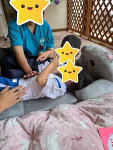 お友達と仲良く活動できた感覚遊び(粘土)、歯磨き、お昼寝ゴロゴロ・・・。