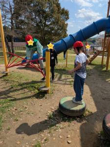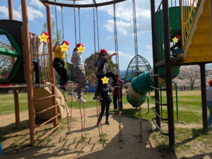 ターザンロープが新しくなっていたので、子ども達は連れ立って遊んでいました。