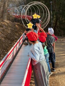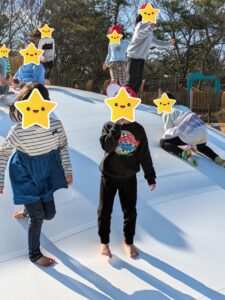 芸術の森公園「あそびの杜」でトランポリンやローラー滑り台で遊んだり、公園内を散策しました。