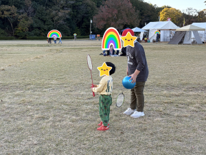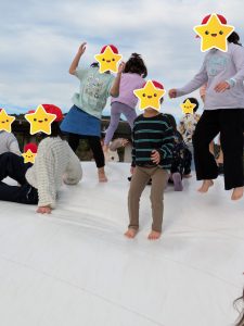 お天気が良かったので芸術の森公園へ行きました。あそびの杜の遊具で遊んだり、芝生の広場でボールやバトミントンをして楽しみました。