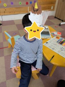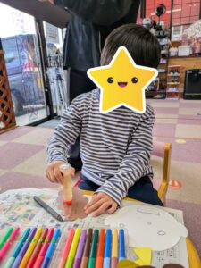 「鬼のお面」作りをしました。とってもかわいいでしょう。