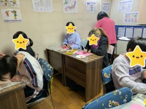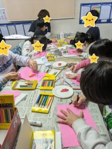 バレンタインカード作りをしました。メッセージは内緒です。