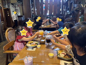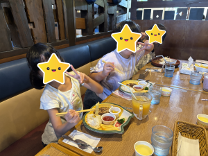 ♥2025-08-29 平日最後の夏休み・・・。 「びっくりドンキー」で子ども達と楽しく食事をしてきました。 午後からは、室内でレクリエーションをしたり、ビンゴゲームで全員が無事景品をゲットすることができました。 シェアする