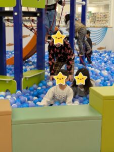 ごっこ遊びやボールプール、アスレチック遊具などで時間いっぱい遊び大満足でした。